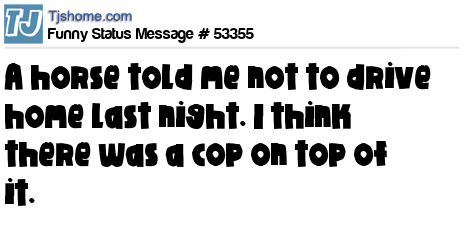 - # 18430 A horse told me not to drive home last night.I think there was a cop on top of it.