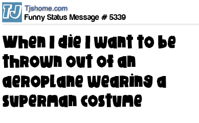 - # 113330 When I die, I want My body to be thrown out of a plane wearing a Superman costume