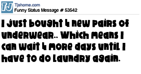 X is I just bought 4 new pairs of underwear.. Which means I can wait 4 more days until I have to do laundry again.