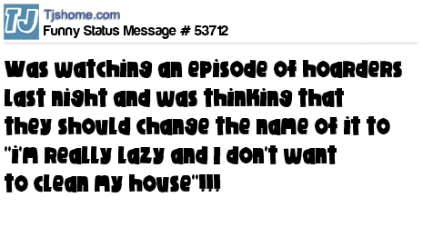 X  Was watching an episode of hoarders last night and was thinking that they should change the name of it to ''i'm really lazy and I don't want to clean my house''!!!