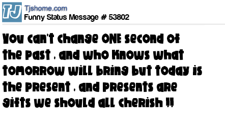 X You can't change ONE second of the past , and who knows what tomorrow will bring but today is the present , and presents are gifts we should all cherish !!