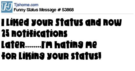 - # 9024 I Liked your Status and now 25 notifications later........I'm hating me for Liking your status. !!!!