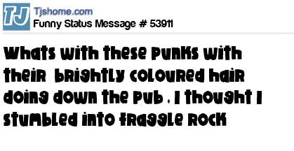 X  whats with these punks with their  brightly coloured hair doing down the pub , I thought I stumbled into fraggle rock