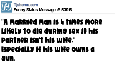X ''A married man is 4 times more likely to die during sex if his partner isn't his wife.'' Especially if his wife owns a gun.