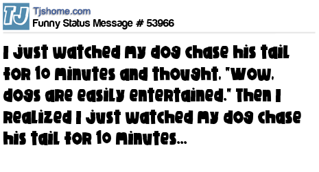 - # 67746 I just watch my dog chase his own tail for 10 minutes and I was like, "Wow dogs are easily entertained." Then I realized that I just watched my dog chase his tail for 10 minutes.....