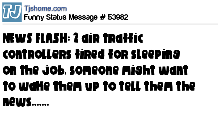 X NEWS FLASH: 2 air traffic controllers fired for sleeping on the job, someone might want to wake them up to tell them the news.......