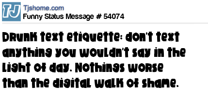 X Drunk text etiquette: don't text anything you wouldn't say in the light of day. Nothings worse than the digital walk of shame.