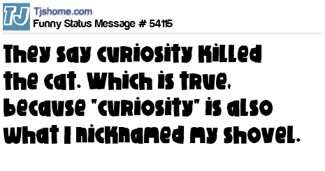 X They say curiosity killed the cat. Which is true, because "curiosity" is also what I nicknamed my shovel.