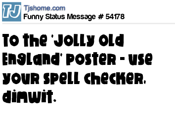 X says To the 'Jolly Old England' poster - use your spell checker, dimwit.