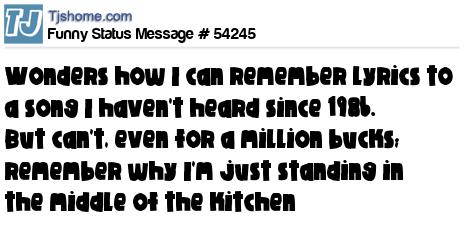 - # 208617 My ability to remember all of the lyrics from the 80s, Far exceeds my memory of why I just walked into the kitchen..
