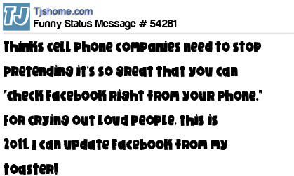 X thinks cell phone companies need to stop pretending it's so great that you can "check Facebook right from your phone." For crying out loud people, this is 2011, I can update Facebook from my toaster!
