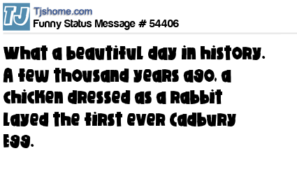 X What a beautiful day in history. A few thousand years ago, a chicken dressed as a rabbit layed the first ever Cadbury Egg.