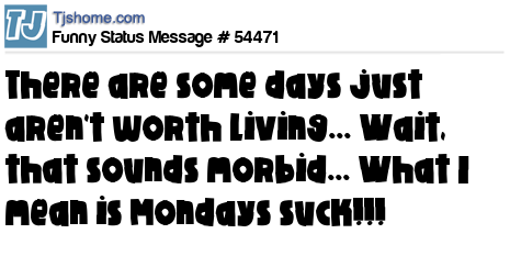 X says There are some days just aren't worth living... Wait, that sounds morbid... What I mean is Mondays suck!!!