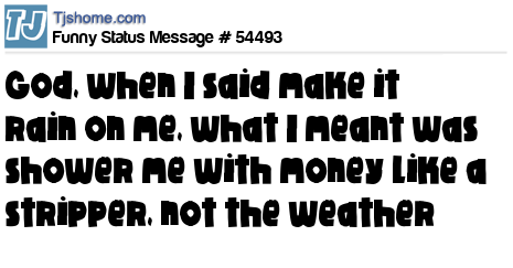 X is God, when I said make it rain on me, what I meant was shower me with money like a stripper, not the weather