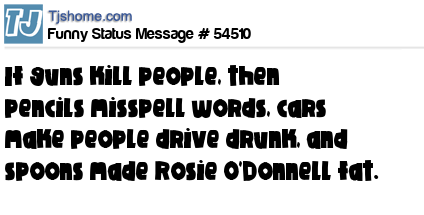- # 16654 if guns kill people, then spoons make people overweight...