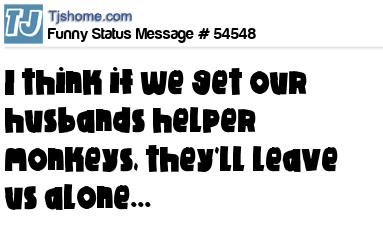 X I think if we get our husbands helper monkeys, they'll leave us alone...
