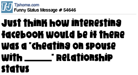 X Just think how interesting facebook would be if there was a "cheating on spouse with _______" relationship status