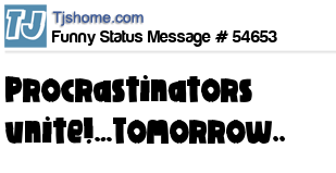 - # 194131 I got kicked out of the procrastinators club when I showed up for our first meeting..