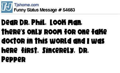 X Dear Dr. Phil, Look man, there's only room for one fake doctor in this world and I was here first. Sincerely, Dr. Pepper