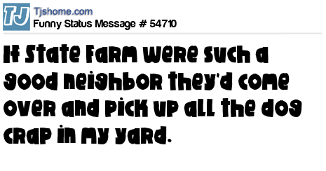 - # 65398 If State Farm were such a good neighbor theyd come over and pick up all the dog s@it in my yard.