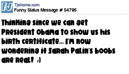 X is thinking since we can get President Obama to show us his birth certificate... I'm now wondering if Sarah Palin's boobs are real? ;)