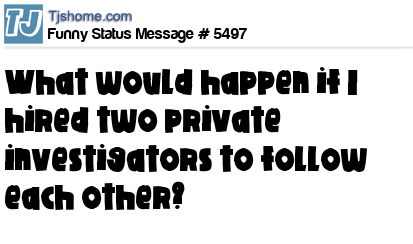 - # 67668 wonders what would happen if I hired two private investigators to follow each other?
