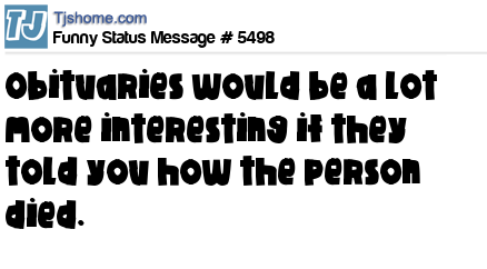 X says Obituaries would be a lot more interesting if they told you how the person died.