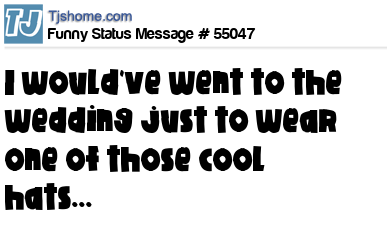 - # 54893 I'm at the wedding, you guys just can't see me because I've got one of those weird hats on.