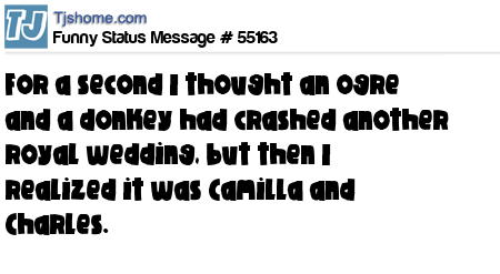 X says for a second I thought an ogre and a donkey had crashed another royal wedding, but then I realized it was Camilla and Charles.