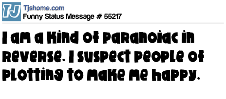 - # 26803 I am a kind of paranoid in reverse. I suspect people of plotting to make me happy.
