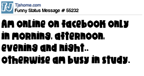 X is Am online on facebook only in morning, afternoon, evening and night.. otherwise am busy in study.