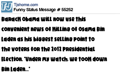 X says Barack Obama will now use this convenient news of killing of Osama Bin Laden as his biggest selling point to the voters for the 2012 Presidential Election. "Under my watch, we took down Bin Laden..."