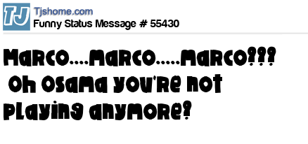 X Marco....marco.....marco??? Oh Osama you're not playing anymore?