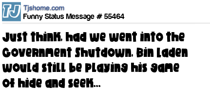 X Just think, had we went into the Government Shutdown, Bin Laden would still be playing his game of hide and seek...