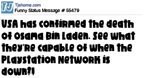- # 55427 So Osama Bin Ladens dead....Amazing what Americans can do when playstation network is down