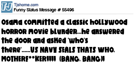 - # 55487 Bin Laden may have been great at Hide-&-Seek but he sucked at Marco Polo. Navy Seal "Marco"..Bin Laden "Polo"...Navy Seal 'Bang..Bang'