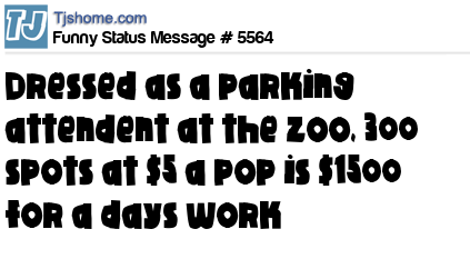 X is dressed as a parking attendent at the zoo, 300 spots at $5 a pop is $1500 for a days work