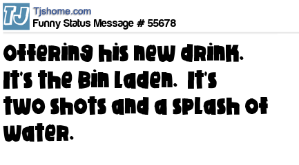 X is offering his new drink. It's the Bin Laden. It's two shots and a splash of water.