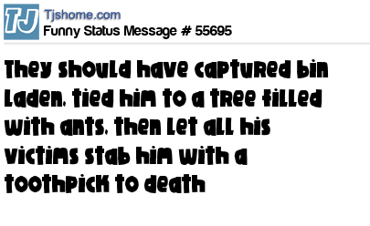 X is they should have captured bin laden, tied him to a tree filled with ants, then let all his victims stab him with a toothpick to death
