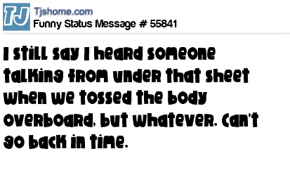 X I still say I heard someone talking from under that sheet when we tossed the body overboard, but whatever. Can't go back in time.
