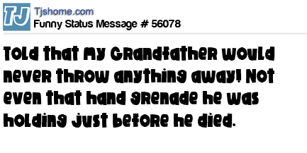 X was told that my Grandfather would never throw anything away! Not even that hand grenade he was holding just before he died.