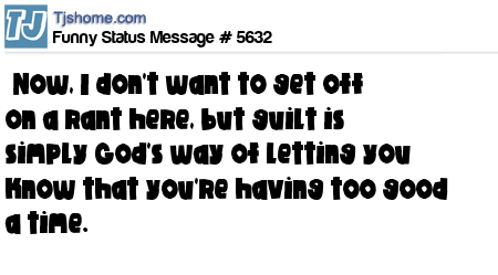X “Now, I don't want to get off on a rant here, but guilt is simply God's way of letting you know that you're having too good a time.”