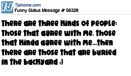 X says There are three kinds of people: Those that agree with me, those that kinda agree with me...then there are those that are buried in the backyard ;)