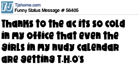 X is Thanks to the ac its so cold in my office that even the girls in my nudy calendar are getting T.H.O's