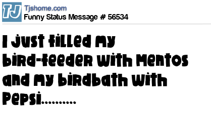 X is I just filled my bird-feeder with Mentos and my birdbath with Pepsi..........