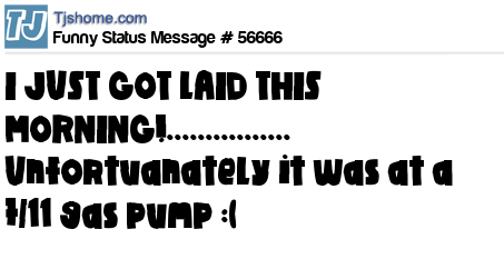 X I JUST GOT LAID THIS MORNING!................ Unfortuanately it was at a 7/11 gas pump :(