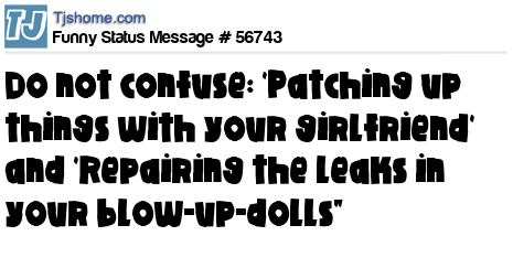 X is Do not confuse: 'Patching up things with your girlfriend' and 'Repairing the leaks in your blow-up-dolls"