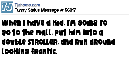 X  When I have a kid, I'm going to go to the mall, put him into a double stroller, and run around looking frantic.
