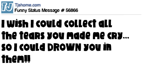 - # 85782 I wish I could collect all the tears you made me cry.. So I could DROWN you in them :(