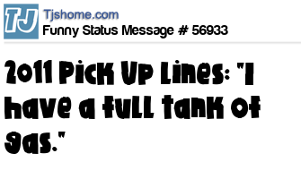X 2011 Pick Up Lines: "I have a full tank of gas."
